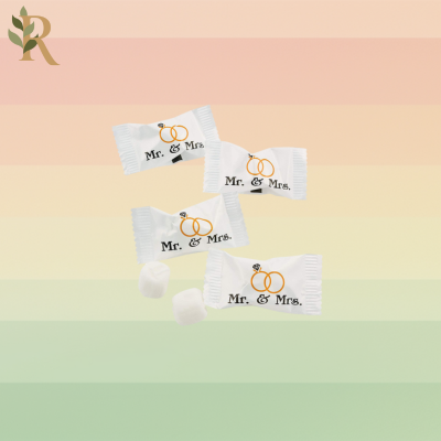 If you’re more of a DIY kind of person, consider taking candies and putting them in a jar. Hershey’s Kisses are a popular wedding candy, and they convey the sweetest message when gifted to your guests. You can sprinkle them on the tables or put them in goodie bags for your guests to enjoy later.