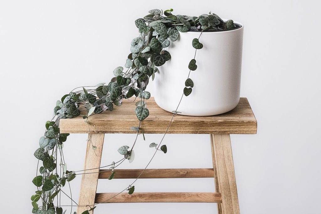 String of pearls (senecio rowleyanus) is a name that accurately represents this succulent. It has long, thin stems covered in small, rounded leaves. Hanging pots are the best home for this plant because the strings trail and can grow very long. Its unique appearance draws the eye and can be the perfect touch to elevate a space.