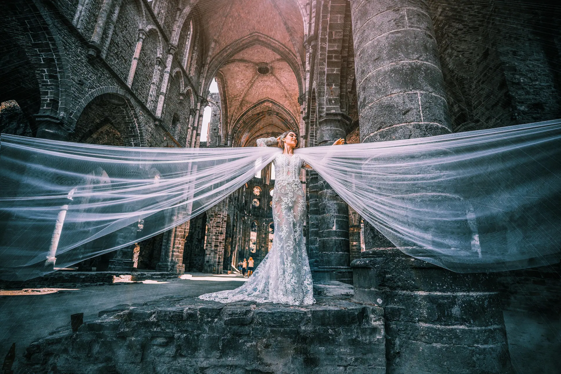 White dress? We don’t know her. Your wedding is your moment to be THAT fashion icon. Embrace vibrant hues like electric blue, fuchsia pink or even a deep vampy red. Ditch the princess gown for something sculptural. Consider a deconstructed corset or a dramatic cape that can cover the entire Chromatica. Your partner can wear a sharp, tailored suit in an unexpected color, too.